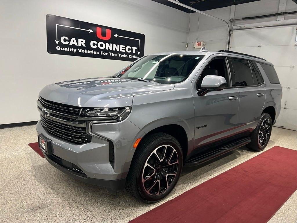 Welcome to U Car Connect! We are an independent pre-owned automobile dealer having operated family owned stores in Minnesota since 1973.We specialize primarily in German Import Cars and premium trade ins of all makes. 4WD, Jet Black/Victory Red Leather. Clean CARFAX. Satin Steel Metallic 2022 Chevrolet Tahoe RST 4WD 10-Speed Automatic with Overdrive EcoTec3 5.3L V8